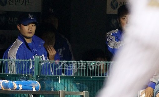 5일 서울 잠실구장에서 열린 프로야구 삼성 라이온즈와 LG 트윈스의 경기에서 삼성 오승환이 경기를 지켜보고 있다.