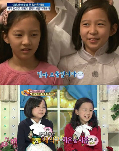 전수경은 7일 방송된 SBS ‘배기완 최영아 조형기의 좋은아침’(이하 좋은아침)을 통해 이란성 쌍둥이 딸 주지온, 주시온 양을 공개했다.
