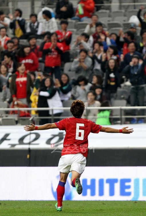 홍명보 감독이 이끄는 올림픽축구대표팀이 7일 오후 서울 상암월드컵경기장에서 우즈베키스탄과 친선경기를 가졌다. 박종우가 세번째 골을 터트리고 세레모니를 펼치고 있다.