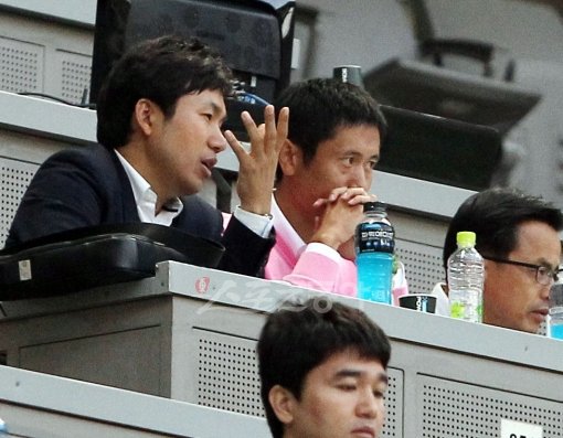 홍명보 감독이 이끄는 올림픽축구대표팀이 7일 오후 서울 상암월드컵경기장에서 우즈베키스탄과 친선경기를 가졌다. 이영표가 후배들의 경기를 지켜보고 있다.