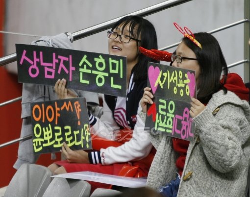 대한민국과 폴란드 국가대표 친선경기가 11일 오후 서울 마포구 월드컵경기장에서 축구팬이 피켓을 들며 응원을 하고 있다.