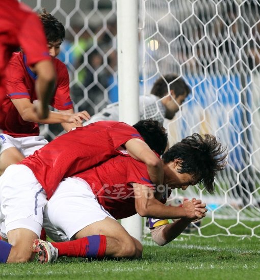 7일 서울월드컵경기장에서 열린 축구국가대표팀 대 폴란드 친선경기에서 축구대표팀 박주영이 후반전 동점골을 넣은 후 환호하고 있다.