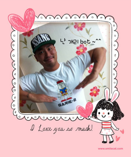 힙합 듀오 리쌍의 길(@GillMeo)이 개리에게 선물 받은 티셔츠를 공개했다. 길은 8일 트위터에 “개리에게 개리 티셔츠를 선물 받았어요. 그런데 사이즈가...16년 친구인데 참..”이라는 글과 함께 사진을 올렸다. 사진 속 길은 체격에 비해 작아 보이는 티셔츠를 입고 어색한 웃음을 짓고 있다. 누리꾼들은 ‘살 빠졌을 때 모습을 보고 산 티셔츠 아닐까요?’ ‘16년지기의 센스가 보이는 선물이다’며 재미있다는 반응을 보였다.