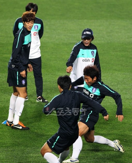 한국축구대표팀 선수들이 UAE와의 2014년 브라질 월드컵 아시아지역 3차 예선전을 하루 앞둔 10일 수원월드컵경기장에서 훈련 모습을 언론에 공개했다.