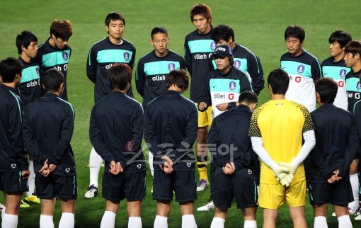 한국축구대표팀 선수들이 UAE와의 2014년 브라질 월드컵 아시아지역 3차 예선전을 하루 앞둔 10일 수원월드컵경기장에서 훈련 모습을 언론에 공개했다.