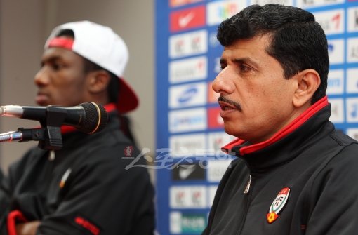 한국전을 앞둔 아랍에미리트연합(UAE)의 압둘라 미스파르 감독이 10일 수원월드컵경기장에서 훈련에 앞서 기자회견을 갖고 있다.