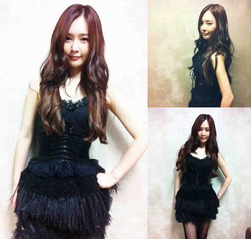 사진은 검정색 의상을 입고 카메라를 응시하는 메이비의 모습을 담고 있다. 동안 미모와 함께 유난히 가는 허리와 팔 등이 눈길을 끈다.
