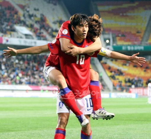 박주영이 선취골을 터트리고 구자철과 세레모니를 펼치고 있다. 수원ㅣ박화용 기자 inphoto@donga.com 트위터 @seven7sola