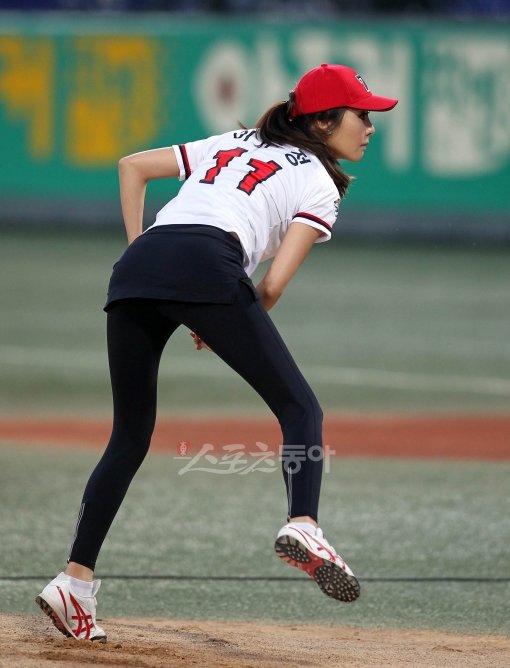 2011 프로야구 KIA 타이거즈와 SK 와이번스 준플레이오프 3차전 경기가 11일 광주무등경기장에서 열렸다. 경기 전 방송인 이수정이 시구를 하고 있다.