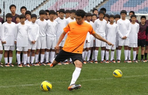 선덜랜드 지동원(20·사진)이 12일 부천종합운동장에서 열린 ‘나이키 엘리트 트레이닝 아카데미’에 참가해 축구 꿈나무들 앞에서 시범을 보이고 있다. 지동원은 후배들에게 “체계적인 훈련과 구체적인 꿈을 가지고 노력하라”고 조언했다.
