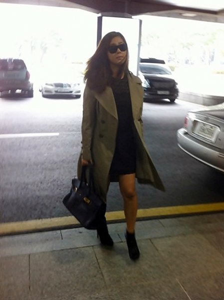 솔비는 심플한 블랙 원피스와 선글라스에 트렌치코트를 매치해 ‘차도녀’ 느낌을 살렸다.