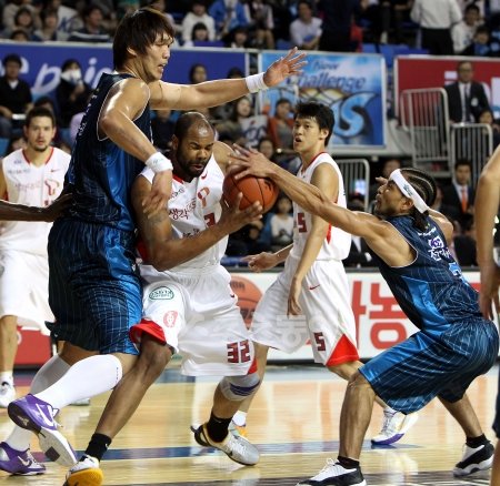 하지만 돌발변수가 생겼다. 외국인 선수 디숀 심스가 2쿼터 중반 4번째 반칙을 선언당하며, ‘파울 트러블’에 걸린 것이다. 하승진은 여유있게 벤치를 지킬 수만은 없었다. 3쿼터까지 그의 출전시간은 팀에서 가장 많은 25분27초였다. 골리앗은 3쿼터까지만 8득점에 14리바운드를 잡아내며, 골밑을 지배했다.