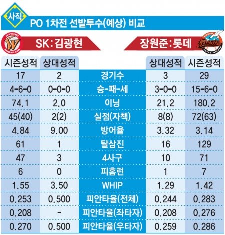 SK·롯데, 이유있는 PO 1차전 선발 낙점