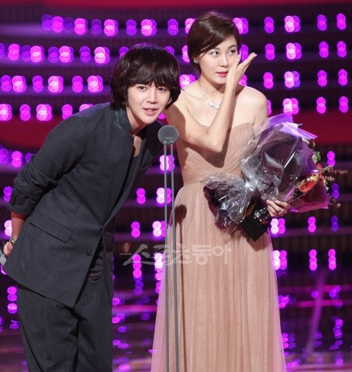 17일 오후 서울 세종문화회관에서 열린 ‘제48회 대종상영화제 시상식’에서 배우 장근석이 여우주연상을 수상한 배우 김하늘을 축하하기 깜짝 등장했다.