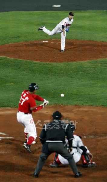 평소보다 포크볼을 많이 구사했는데 체력 부담이 큰 볼배합이라 4∼5회에는 어려움을 겪을 수도 있을 것으로 내다봤지만 괜한 걱정이었다. 정규시즌에 직구로 볼 카운트를 유리하게 이끌고, 결정구로 포크볼을 즐겨 사용했다. 그러나 오늘은 1·2구부터 포크볼로 승부해 SK 타자들을 교란시켰다. 중반으로 접어들면서도 호투할 수 있었던 원동력이다.
