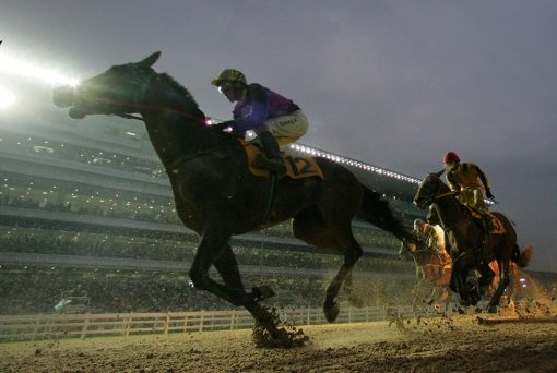 경주가 시작됐다. 발주대를 박차고 14마리의 말이 튀어 나왔다. 모래가 날리며 말들의 치열한 자리싸움이 벌어졌다. 그 중 한 마리가 스프링처럼 무리를 제치고 혈혈단신으로 뛰어나간다.
