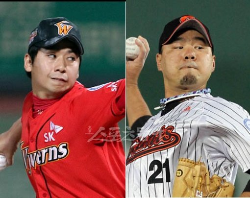 PO4차전 선발로 예정된 윤희상(SK·왼쪽)의 포크볼이 스피드와 좌우무브먼트가 뛰어나다면 PO2차전을 지배한 송승준의 포크볼은 낙차가 크고 공의 변화시점이 홈플레이트와 가까운 장점이 있다. 스포츠동아DB