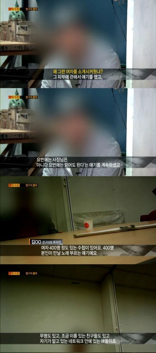 영구아트센터의 투자자는 “(심형래 감독에게) 여자 400명 정도 있는 수첩이 있다. 무명도 있고 조금 이름 있는 친구들도 있다. 모두 심형래 감독이 알고 있는 네트워크 안에 있는 여자들”이라고 덧붙였다. 심형래 감독이 정치인이나 기업인들에게 도움을 받기 위해 여성들을 소개했다는 것.