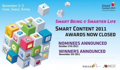 문화체육관광부(장관 최광식)가 주최하고 한국콘텐츠진흥원(원장 이재웅)이 주관하는 스마트콘텐츠 2011 어워드 & 컨퍼런스가 오는 11월 2일부터 3일까지 서울 코엑스에서 열린다. 올해로 6회째를 맞이하는 스마트콘텐츠 2011은 스마트폰, 태블릿 PC 등 모바일 기기용으로 출시한 다양한 어플리케이션(이하 어플)의 자웅을 가리는 ‘스마트 콘텐츠 어워드’와 ‘Smart Being @ Smarter Life’를 주제로 진행하는 컨퍼런스, 투자 피칭, 앱 창작 워크샵, 어워드 후보작 전시와 스마트기기 전시회 등 다양한 프로그램으로 구성된 국제 행사이다.
