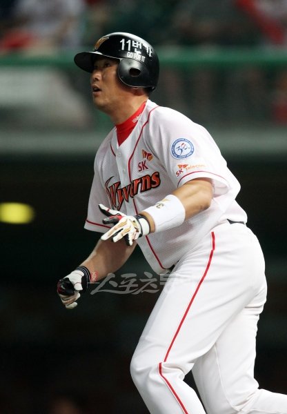 지난해는 LG에서 SK로 유니폼을 갈아입은 후 한국시리즈 엔트리에 포함되지 못했지만 올해는 당당히 이름을 올렸다. 그리고 준플레이오프(준PO) 2차전과 4차전에 지명타자로 나섰다. 하지만 SK 이만수 감독대행은 PO 1, 2차전에 그 대신 이호준을 4번 타순에 넣었다.