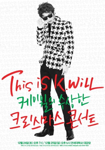 가수 케이윌이 12월 24, 25일 서울 신촌동 연세대학교 대강당에서 ‘디스 이즈 케이윌-케이윌의 수상한 크리스마스 콘서트’라는 제목으로 크리스마스 콘서트를 연다.
