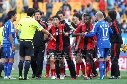 최근 K리그 심판판정 문제가 화두에 오른 가운데 오프사이드는 심판들 사이에서도 가장 까다로운 규정으로 꼽힌다. 오프사이드 골 논란을 불러일으킨 3일 수원-서울의 경기 장면. 스포츠동아DB