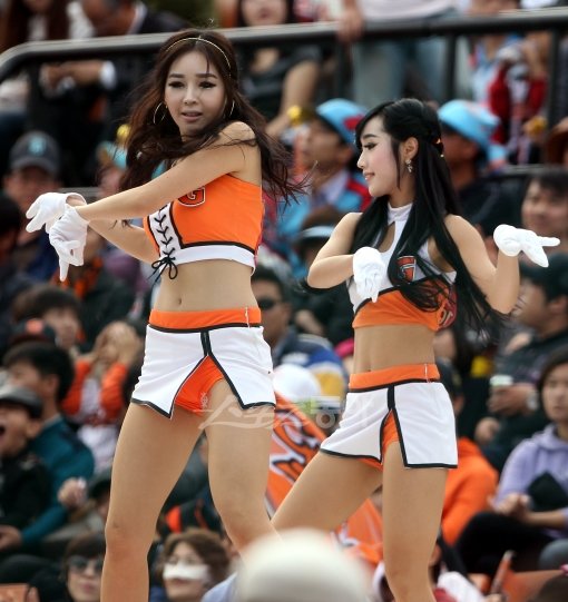 23일 오후 부산 사직야구장에서 열린 2011프로야구 롯데와 SK의 플레이오프 5차전에서 롯데 치어리더가 공연을 펼치고 있다.