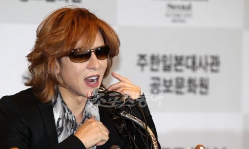 일본의 전설적인 록그룹 '엑스재팬'의 리더 요시키가 26일 오후 서울 구로구 신도림동 쉐라콘 디큐브시티호텔에서 열린 공식 기자회견장에서 취재진의 질문에 답변을 하고 있다.