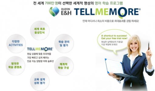 텔미모어(Tell me more) 역시 로제타스톤과 함께 글로벌 어학 학습 솔루션의 대명사로 인식되고 있다. 프랑스의 Auralog 사의 기술력을 바탕으로 세계적인 어학 전문가들이 대거 참여한 대형 교육 프로그램이다. 우리나라에서는 회계 전문 프로그램으로 유명한 ‘더존 E&H’에서 서비스하고 있다.