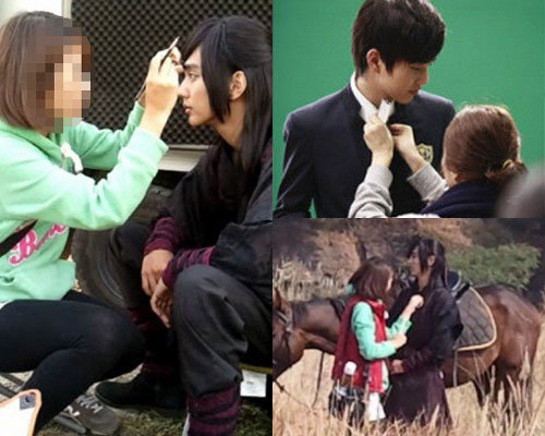 사진은 유승호가 드라마와 광고 촬영을 하기 전 코디가 옷매무새와 헤어스타일을 정리해 주고 있는 모습이 담겼다. 다정하게 옷매무새를 만지고, 유승호는 지긋이 쳐다보는 눈빛이 마치 연인과 같은 느낌을 주고 있다.