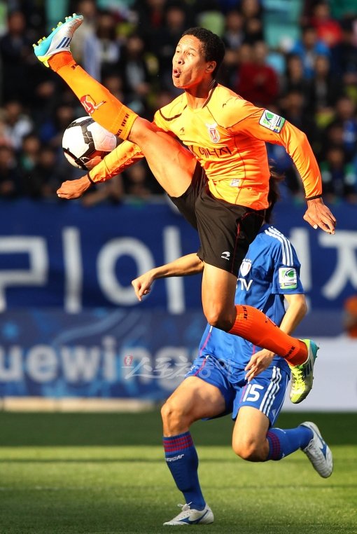 30일 수원원드컵경기장에서 열린 2011 K리그 수원 삼성과 제주 유나이티드의 경기에서 제주 강수일이 공중볼을 놓치고 있다.