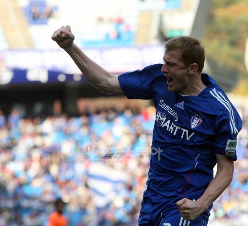 30일 수원원드컵경기장에서 열린 2011 K리그 수원 삼성과 제주 유나이티드의 경기에서 전반 첫 골을 뽑아낸 수원 마토가 세리머니를 하고 있다.