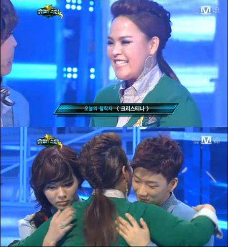 ‘슈퍼스타K 3’는 전날 톱 4 진출자가 심사위원 명곡 부르기에 도전했고 윤미래의 ‘페이 데이’를 부른 크리스티나가 탈락했다. 크리스티나는 심사위원들로부터 고른 호평을 받았으나 사전 온라인 투표와 시청자 문자투표를 합산한 결과 심사위원 점수에서 부진했던 투개월에 밀리며 탈락의 고배를 마셨다.