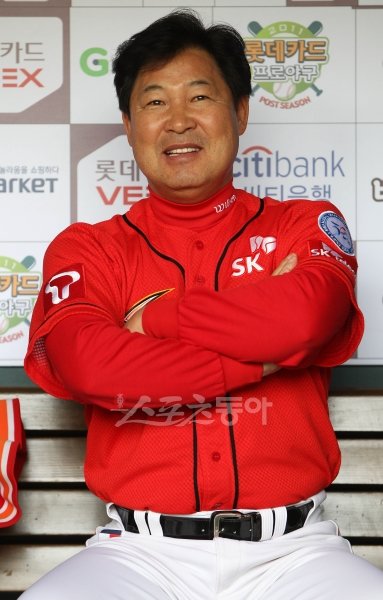 여러분도 알다시피 SK가 우리나라 프로야구에서 기록을 세웠습니다. 준PO, PO, KS까지 가장 많은 경기를 치러서 여기까지 왔다는 것, 5년 연속 KS 진출과 저에게는 영원히 기록이 될 감독대행으로서 여기까지 왔다는 것, 감사드리고 후회는 없습니다.