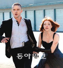 최근 내가 본 가장 놀라운 영화는 ‘인 타임’(지난달 27일 개봉)이다. 이 영화는 보기 전 한 번, 보고 난 후 한 번 놀라게 만들었는데, 보기 전 놀란 것은 ‘시간이 화폐를 대체하게 된 암울한 미래사회를 그린다’는 이야기의 창의성 때문이고, 보고 나서 놀란 것은 이런 뛰어난 콘셉트로 출발했음에도 믿을 수 없을 만큼 헐렁헐렁하고 유치하고 지루하고 한심한 이야기 전개를 보여주기 때문이다.