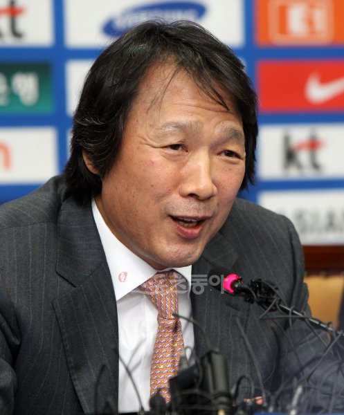 지난달 27일 2014 브라질월드컵 아시아 3차예선 UAE, 레바논과 중동원정 2연전을 앞둔 조광래 감독이 출전선수 명단을 발표하는 모습. 임진환 기자 photolim@donga.com 트위터@binyfafa