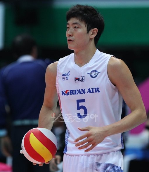 17일 인천 도원실내체육관에서 2011-2012 프로배구 남자부 대한항공과 LIG 손해보험의 경기에 앞서 대한항공으로 트레이드 된 주전세터 황동일이 몸을 풀고 있다.