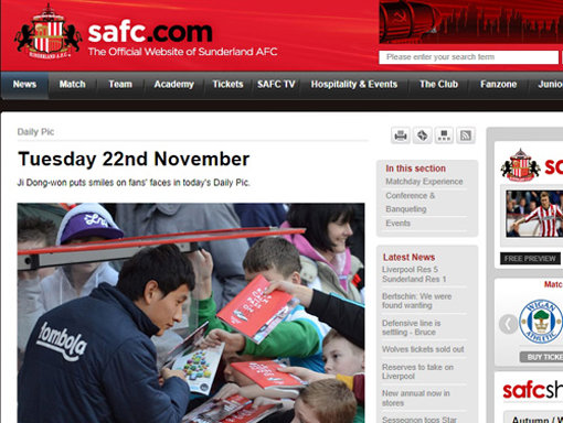 선덜랜드 공식 홈페이지는 22일(이하 한국시간) ‘오늘의 사진’에 플럼전을 앞두고 홈구장인 스타디움 오브 라이트에서 팬들과 만난 지동원의 사진을 선정했다.