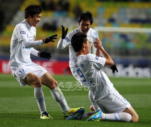 울산 김신욱이 선제골을 넣은 후 세리머니를 하고 있다.