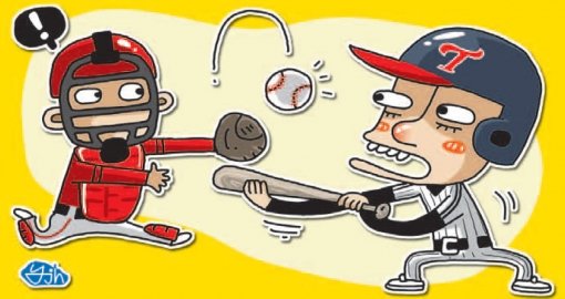 Q. 잠실 SK전에서 LG 박경수가 2루에 주자 오지환을 두고 타석에서 번트 자세를 취했다. 타자가 번트 모션을 취하자 SK 1루수와 3루수는 투수의 투구 동작에 맞춰 홈쪽으로 달리기 시작했다. 박경수는 상대 투수 엄정욱이 던진 직구에 가볍게 번트를 댄다는 것이 그만 자기 앞에 뜨고 말았다. 그대로 두면 포수 박경완이 잡아서 2루 주자까지 아웃될 위기인지라 박경수는 자기 앞에 떠있는 타구를 보더니 포수 박경완이 잡으려는 찰나에 다시 한번 배트를 타구에 대고 말았다. 공을 잡으려던 박경완은 황당하다는 표정으로 김풍기 구심을 쳐다 봤다. 구심은 어떤 판정을 내려야 할까.