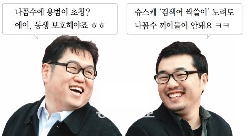 22일 동생이 일하는 서울 마포구 상암동 CJ E&M 본사에서 만난 ‘뜨거운 형제’는 “6개월 만에 본다”며 기자를 제쳐두고 서로 안부를 묻느라 바빴다. 동생은 슈스케3를 막 끝낸 상태이고, 형은 나꼼수 연출 외에도 서버 관리 비용 마련을 위한 전국 투어 콘서트로 정신이 없다.