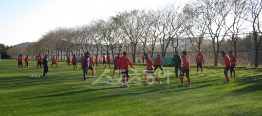 24일 포항 선수단이 맹훈련 중인 송라 클럽하우스 훈련장을 찾았다. 이날 포항의 평균 기온은 영상 7도로 수도권보다 2도 이상 높았다. 경기 당일인 26일에는 기온이 더 오를 것이란 예보가 있다.