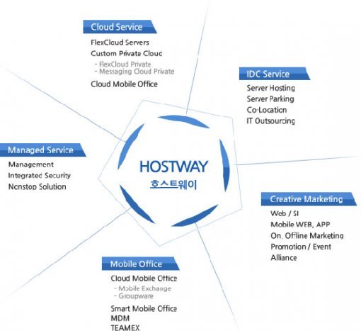 그래도 겉에서만 뱅뱅 맴돌 뿐 확실한 윤곽을 잡지 못한 독자를 위해 여기에서는 클라우드 서비스의 실례를 들어 이해를 돕고자 한다. 이에 공용(public) 클라우드와 보안(private) 클라우드의 특징을 모두 확인할 수 있는 ‘하이브리드 클라우드’ 방식을 보여줄 것이다. 현재 우리나라에서 하이브리드 클라우드 서비스를 제공하고 있는 대표 업체가 바로 ‘호스트웨이’다. 국내 최초의 종량제(사용한 만큼 비용 지불) 클라우드 서비스인 ‘플렉스클라우드 서버(FlexCloud Servers)’로 입지를 다졌으며, IaaS(Infrastructure as a Service)의 서비스 형태로 제공되어 조직의 전산 환경에 따라 신속하고 자유롭게 서버, 스토리지 등을 배치할 수 있다.