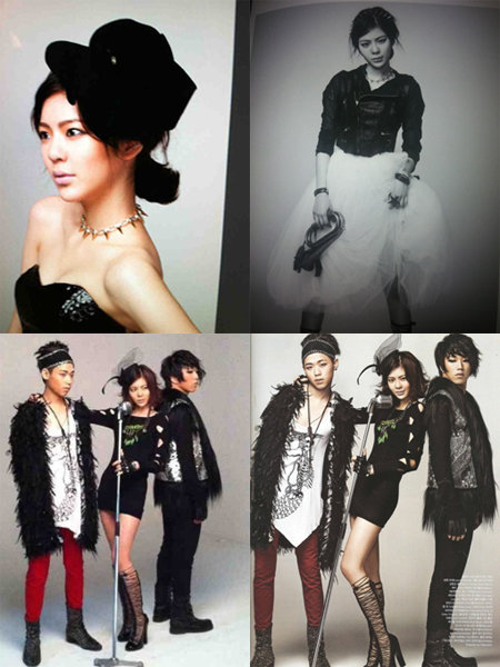 또 그는 스모키 화장을 하고 밴드 ‘톡식’과도 포즈를 취했다. 동일한 포즈로 찍은 직찍과 화보 사진은 보정 전 후에서 차이점을 찾아보기 힘들 정도로 비슷하다.