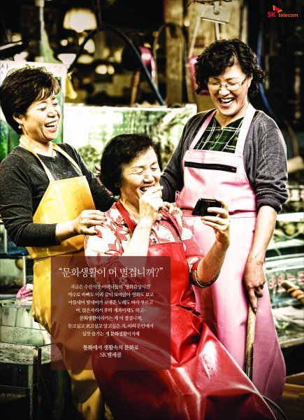 SK텔레콤 2011년 기업PR 신규 캠페인 화두는 ‘가능성’이었습니다. 가능성이란 단어는 특별한 누군가만이 가지고 있는 특별한 능력을 말하는 것이 아닙니다. 이러한 가능성을 재조명하고, 가능성과 보다 적극적으로 만나고, 그들을 응원해 더 많은 가능성들이 결실을 맺을 수 있도록 하겠다는 SK텔레콤의 의지를 담은 것이 바로 SK텔레콤의 ‘가능성을 만나다’ 캠페인입니다. 스포츠동아 광고대상에서 기업PR상을 수상한 것은 ‘수산시장 편’입니다. 그 크기나 형태가 조금씩 다를지라도 세상 모두가 가능성의 존재인 동시에 그만큼 가치 있는 존재임을 알리고자 했던 ‘가능성’편과 동계스포츠의 불모지였던 대한민국의 가능성이 동계올림픽 유치로 꽃을 피웠음을 보여준 ‘평창의 가능성’편에 이은 수산시장 편은 단순한 통화기능의 차원을 넘어 새로운 문화로 자리 잡아 가고 있는 통신서비스의 가능성을 보여줬습니다. 얼핏 휴대전화와 거리가 멀 것 같은 수산시장 어머니들을 모델로 우리의 이웃들이 휴대전화를 통해 다양한 문화의 혜택을 즐기고 이를 통해 더 큰 가능성을 만나는 찰나의 순간을 포착해 담아내고자 했습니다.
