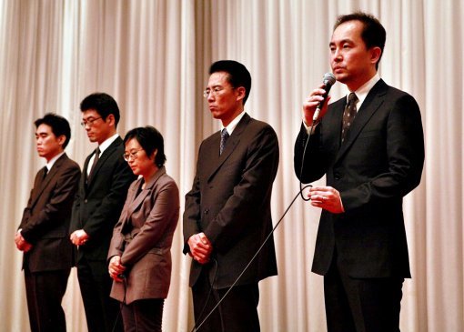 오른쪽부터)이 사과하고 있다. 사진제공|넥슨