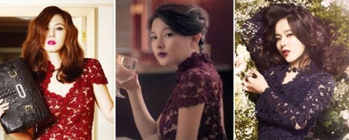 한편 김남주와 정혜영은 각각 패션지 '인스타일'과 '엘르' 화보에서, 이영애는 '올레' 광고 속에서 이같은 모습을 선보였으며, 세 사람이 입은 같은 드레스는 '마크 제이콥스'의 2011 F/W 제품으로 알려졌다.