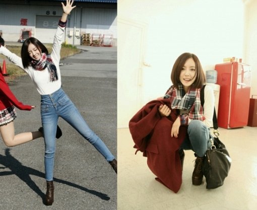 사진 속 효민은 하이웨스트 바지를 입고 양팔과 다리를 쭉 뻗어 늘씬한 몸매를 뽐냈다. 특히 독특한 바지로 우월한 하체 길이를 과시했다. 또 다른 사진에서는 체크 머플러와 가방 등의 소품으로 자신만의 스타일을 엿보게 했다.
