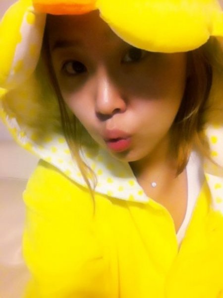 사진 속 신지는 노란색 트위티 잠옷을 입고 깜찍한 표정을 지어 보였다.