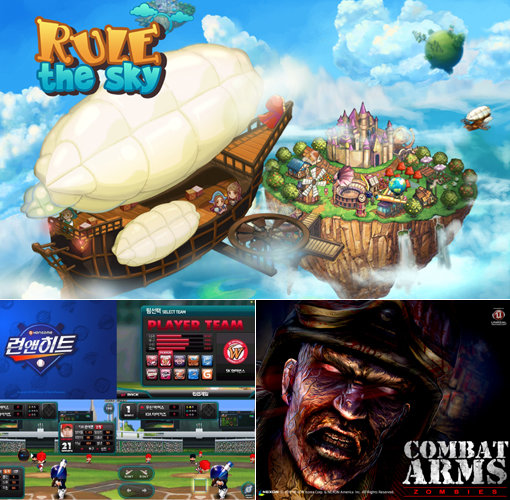 글로벌 애플리케이션 스토어의 게임 카테고리가 열리면서 국내 주요 콘텐츠 제공업체들이 스마트폰 게임 개발과 서비스에 적극 나서고 있다. (큰 이미지부터 시계방향으로)제이씨엔터테인먼트의 ‘룰 더 스카이’와 넥슨의 ‘컴뱃암즈 좀비’, 한게임의 ‘런앤히트’.